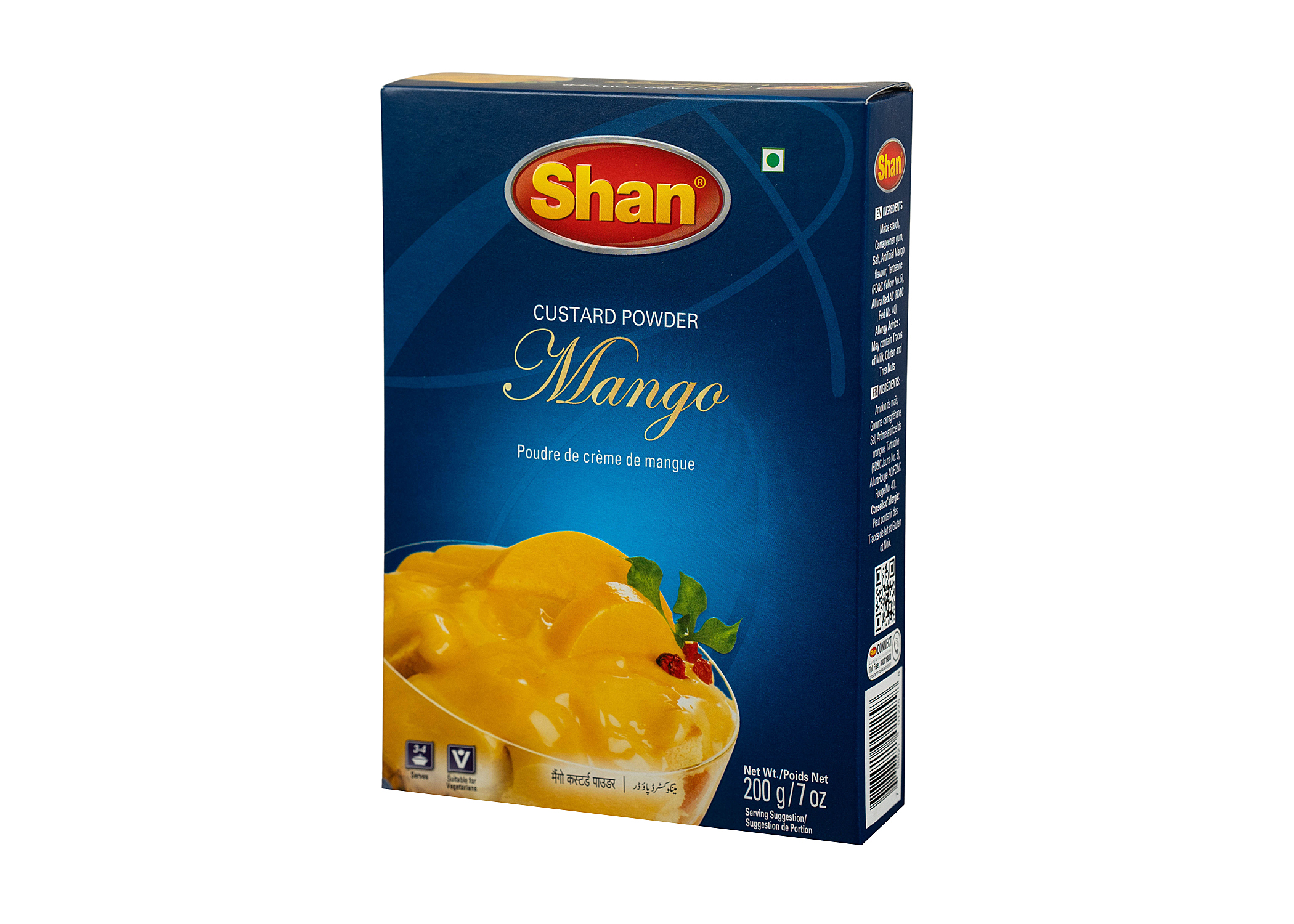 Shan Custard Powder Mango is a vegetarian, mango-flavored custard powder that offers a convenient way to create a rich and creamy dessert. It’s known for its authentic mango taste and is a versatile ingredient for various desserts like puddings, cakes, and fruit salads.